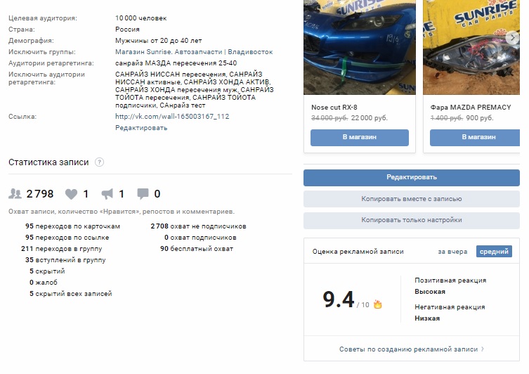 — настройка и ведение таргетированной рекламы (отдельная услуга);